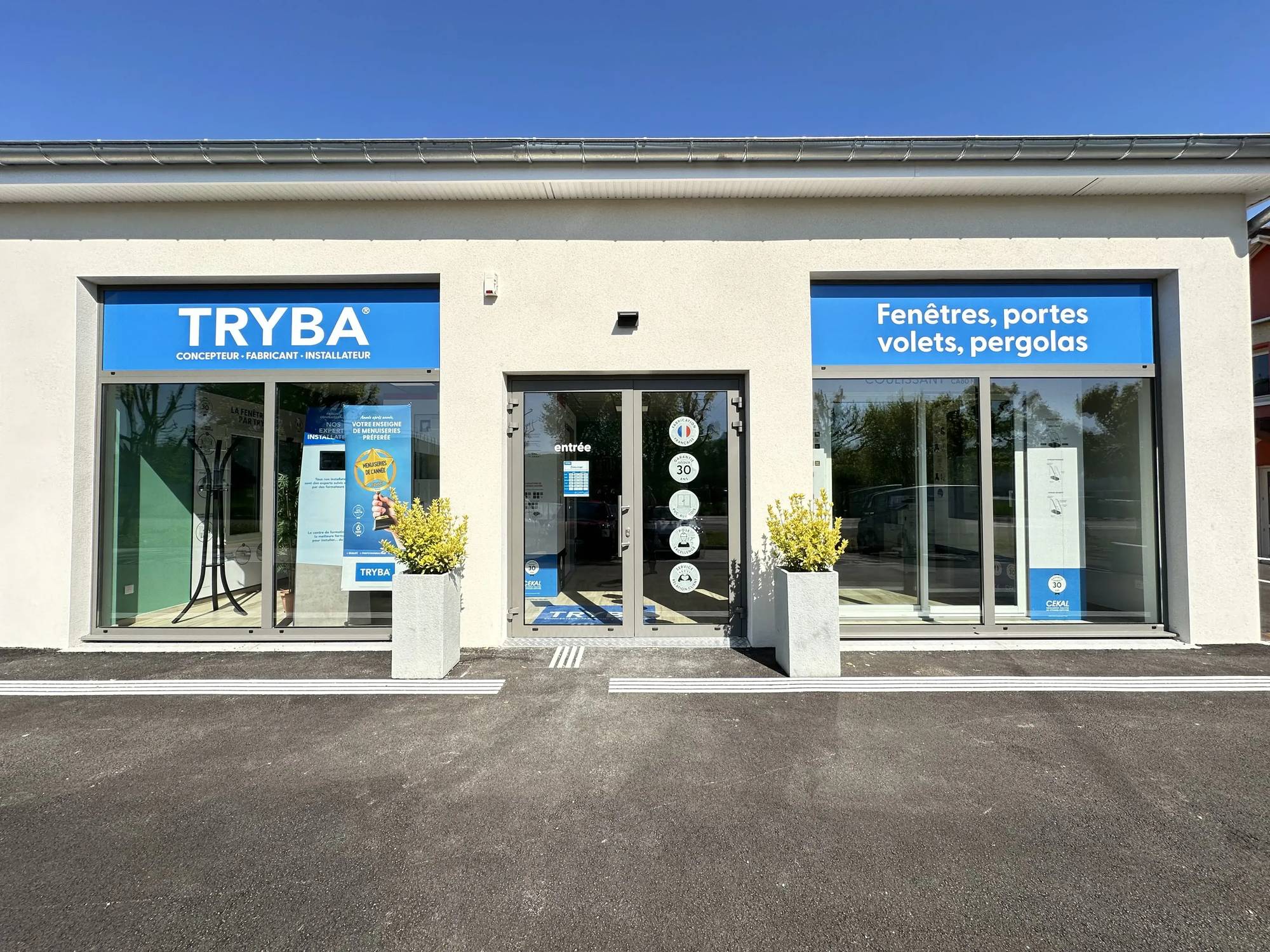TRYBA, acteur incontournable de la fenêtre sur mesure en France, s'adapte à votre besoin et vous propose une large gamme de menuiseries. Avec un vaste choix de coloris, de matériaux (fenêtres PVC, aluminium), et d'options, nous répondons à tout type de demande. Selon la configuration de votre intérieur et de votre extérieur, vous aurez le choix entre diverses formes et ouvertures : portes-fenêtres, fenêtres à ouverture coulissante, etc. À cela s'ajoutent les performances reconnues de nos gammes de fenêtres sur mesure sur le plan thermique, phonique et sécuritaire. Nous soignons aussi tout particulièrement la pose de menuiseries : elle est réalisée par nos équipes d’experts poseurs formés et certifiés sur nos produits. Rendez-vous dans nos centres experts, pour bénéficier des conseils de nos spécialistes dans vos projets de rénovation ou de construction sur-mesure.
