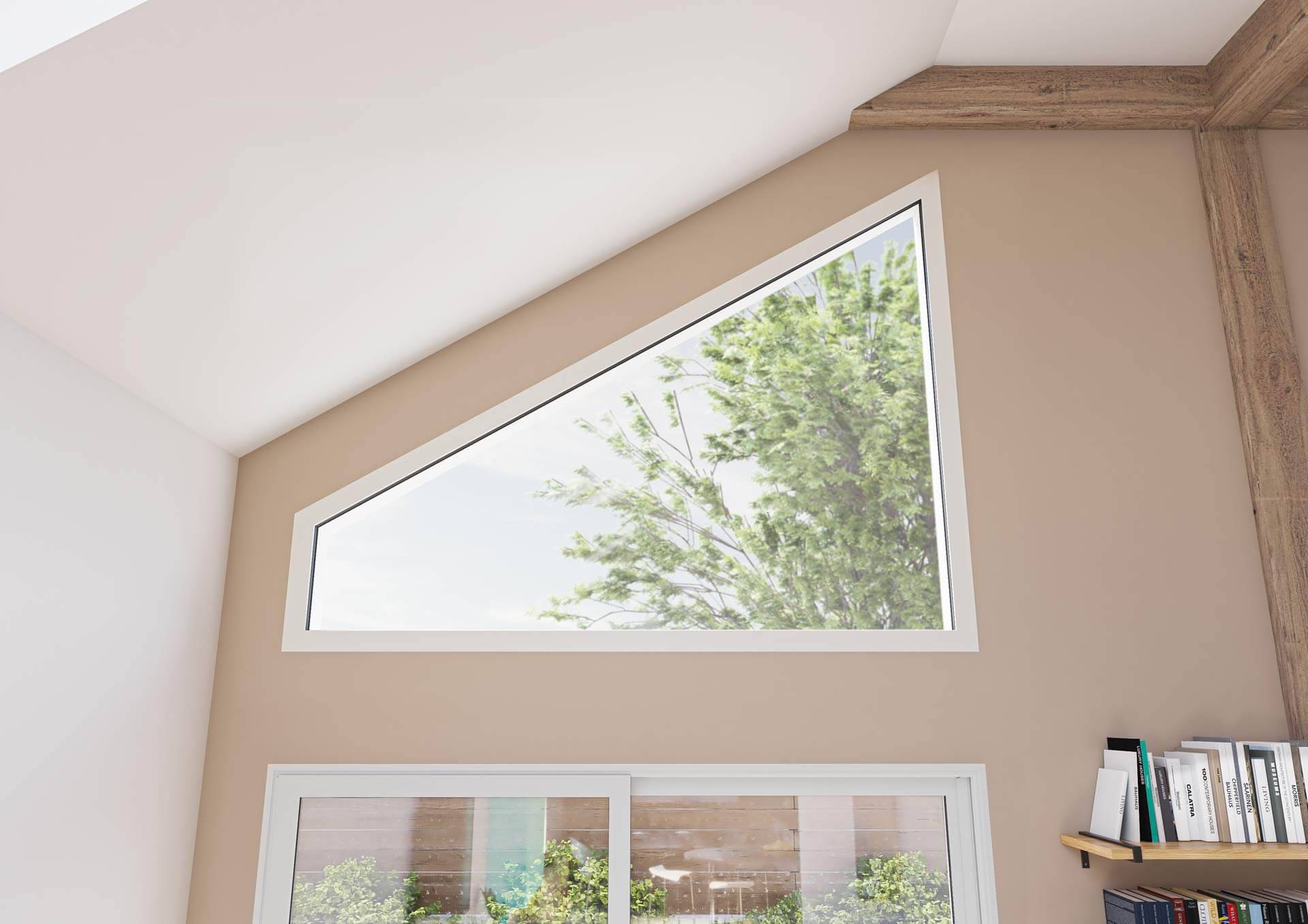 • Les fenêtres triangulaires et trapézoïdales, typiques de l’architecture contemporaine et parfaites pour suivre la pente d’un toit.