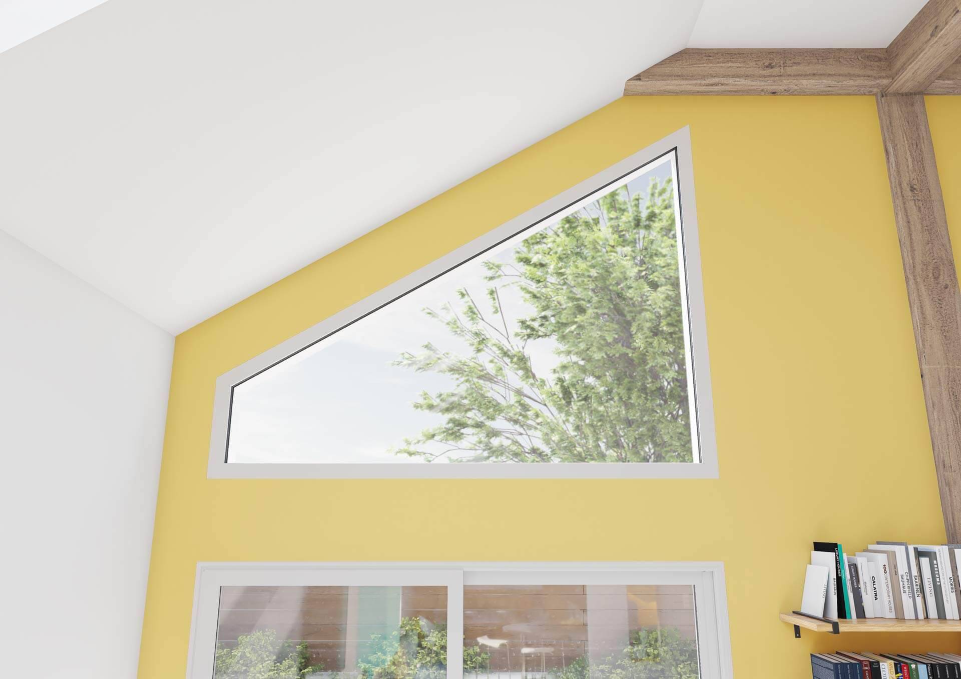 • Les fenêtres triangulaires et trapézoïdales, typiques de l’architecture contemporaine et parfaites pour suivre la pente d’un toit.