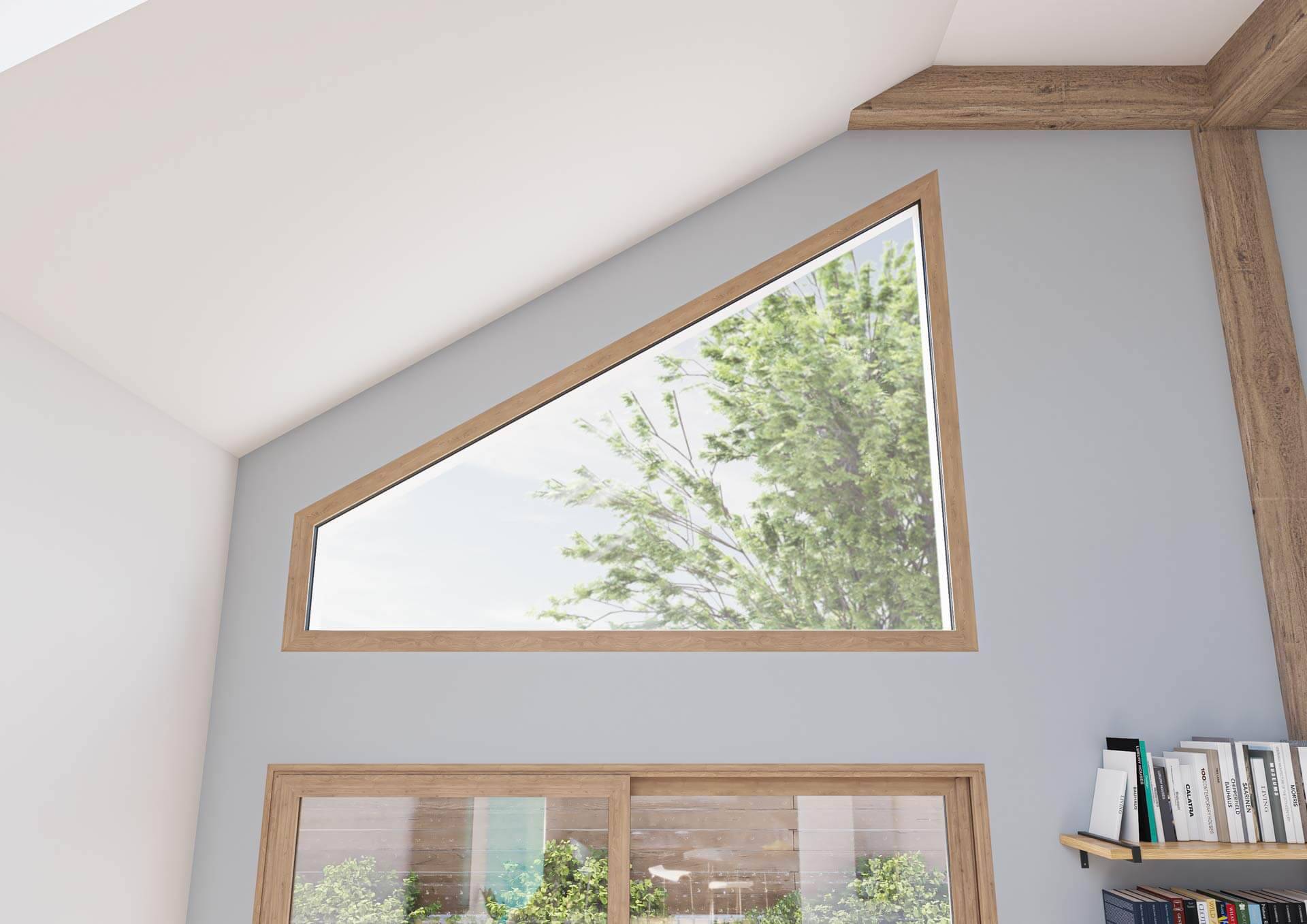 • Les fenêtres triangulaires et trapézoïdales, typiques de l’architecture contemporaine et parfaites pour suivre la pente d’un toit.