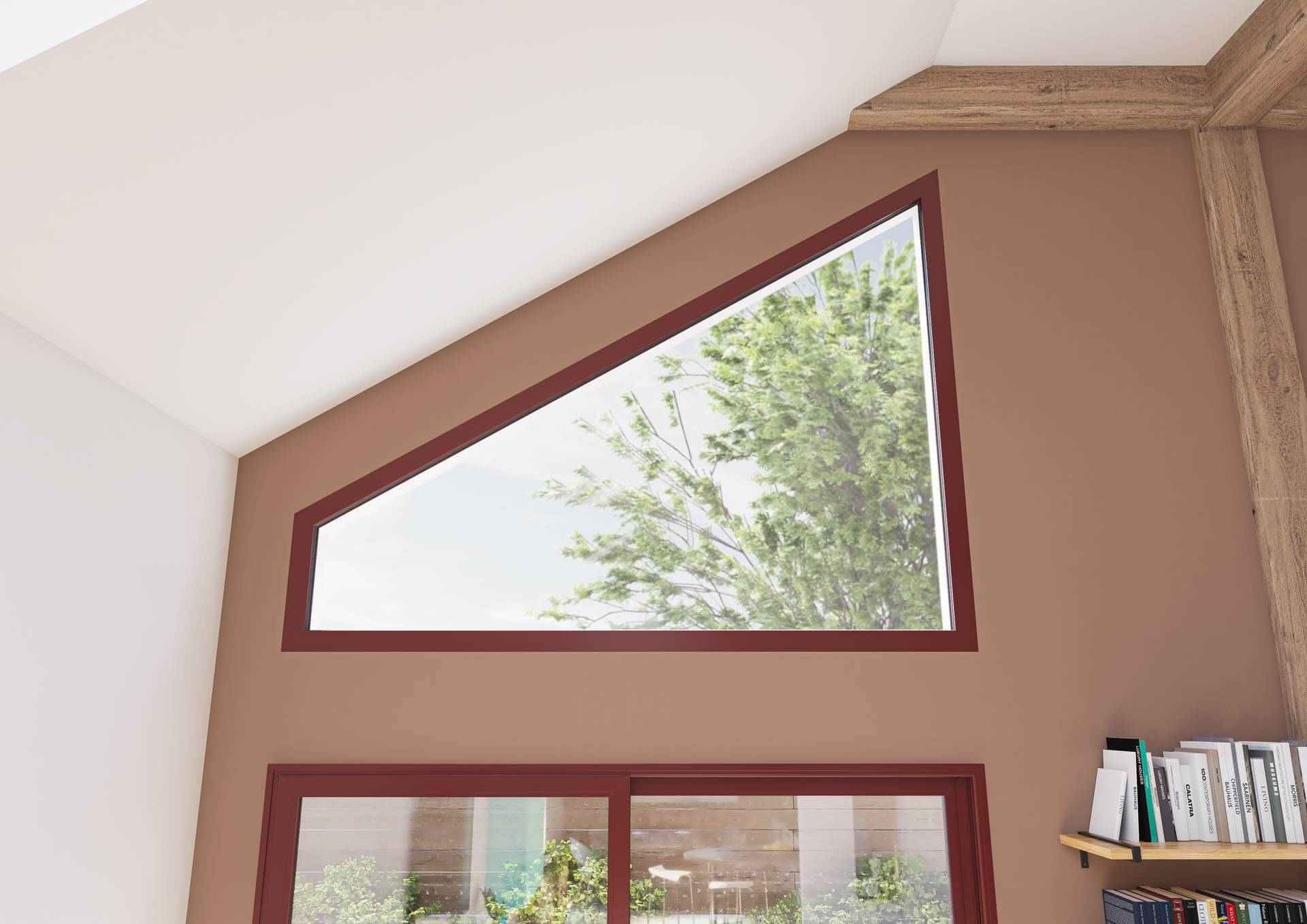 • Les fenêtres triangulaires et trapézoïdales, typiques de l’architecture contemporaine et parfaites pour suivre la pente d’un toit.
