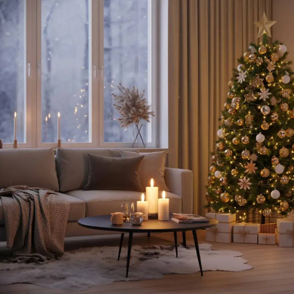 Si vous aimez les ambiances nordiques, optez pour des décos naturelles : bois clair, ficelle, bougies LED, petits flocons suspendus.