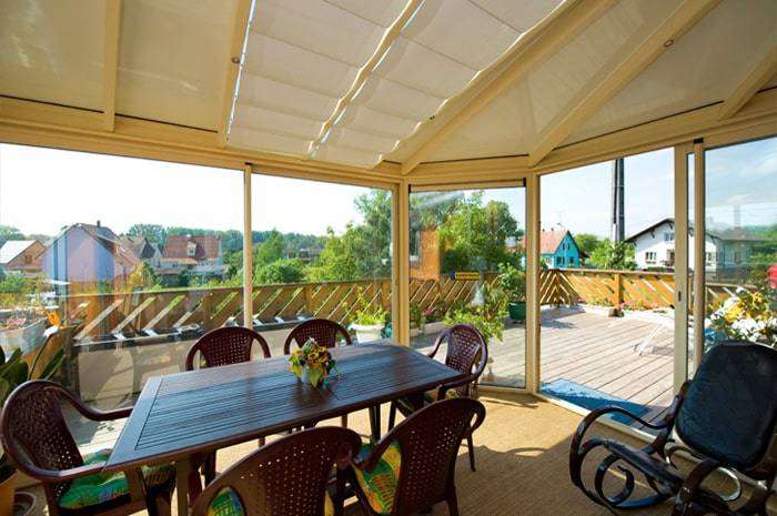 La toile Reflex’sol assure l’isolation thermique quelle que soit la saison. Elle assure des températures parfaites l’été et la possibilité de placer une toile été/hiver qui permet, même en hiver, de garder des températures vous permettant de profiter de ce lieu de vie alors que les conditions climatiques sont extrêmes.