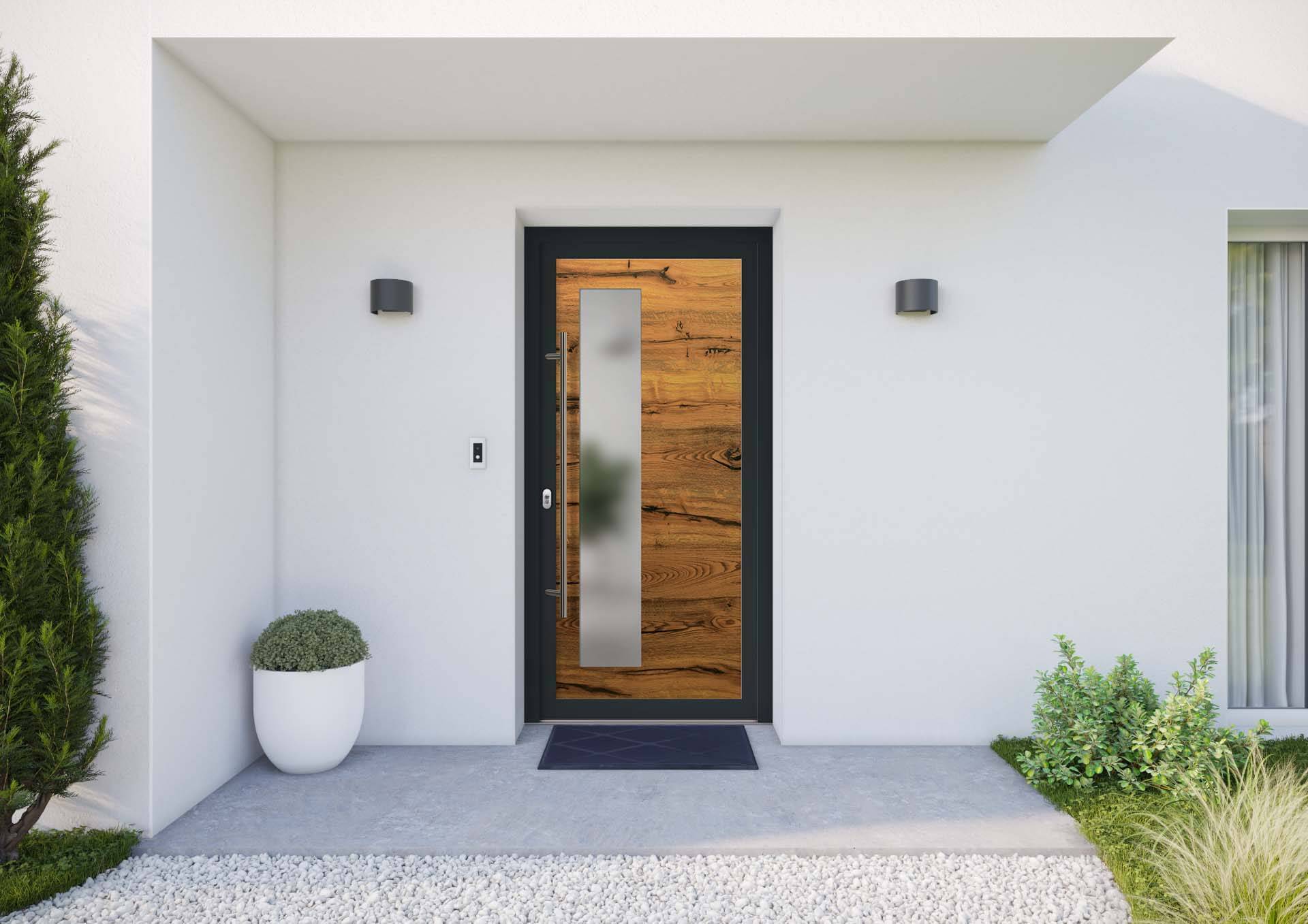 Porte d’entrée Aluminium semi-vitrée Mino Un design moderne pour une entrée remarquablement solide et élégante.