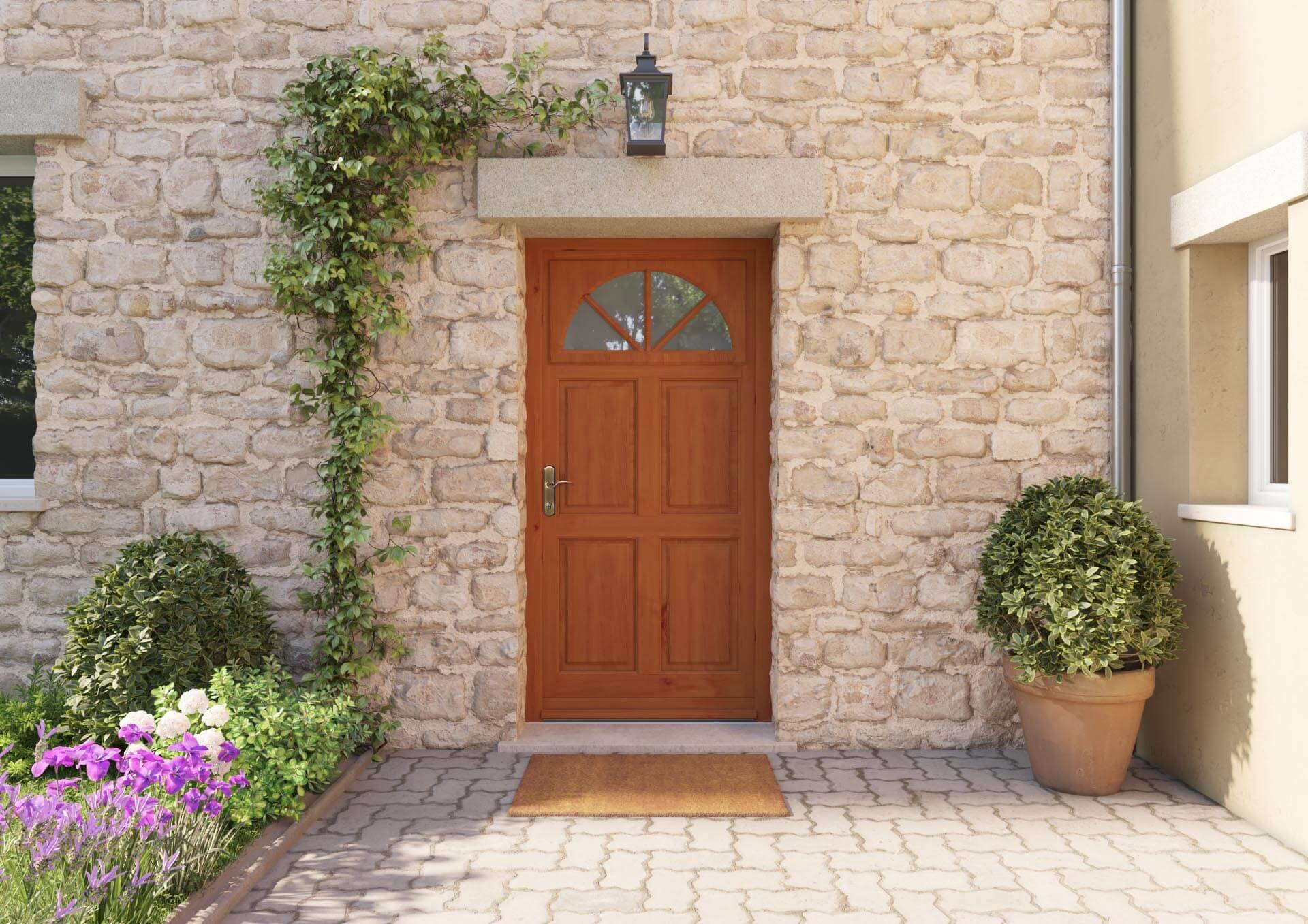 Profitez de la robustesse et de la solidité du battant et du dormant de 67 mm d'épaisseur pour une porte d'entrée en bois durable.