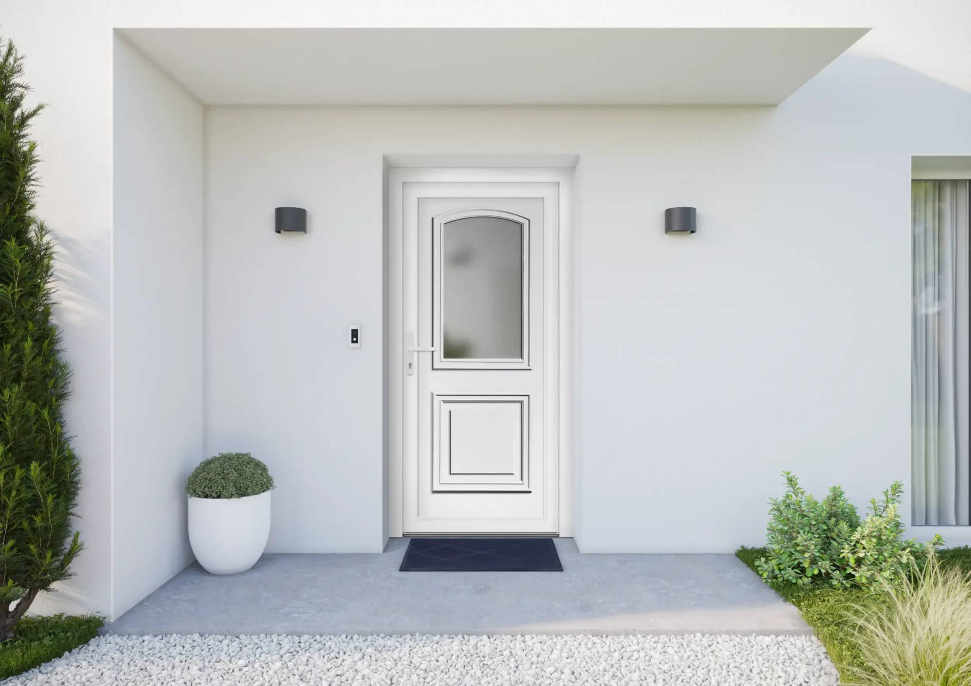 Sécurité et fiabilité sont au rendez-vous avec nos portes d'entrée en PVC semi-vitrées : leur construction robuste et leur système de verrouillage hautement performant garantissent une protection maximale pour votre maison.