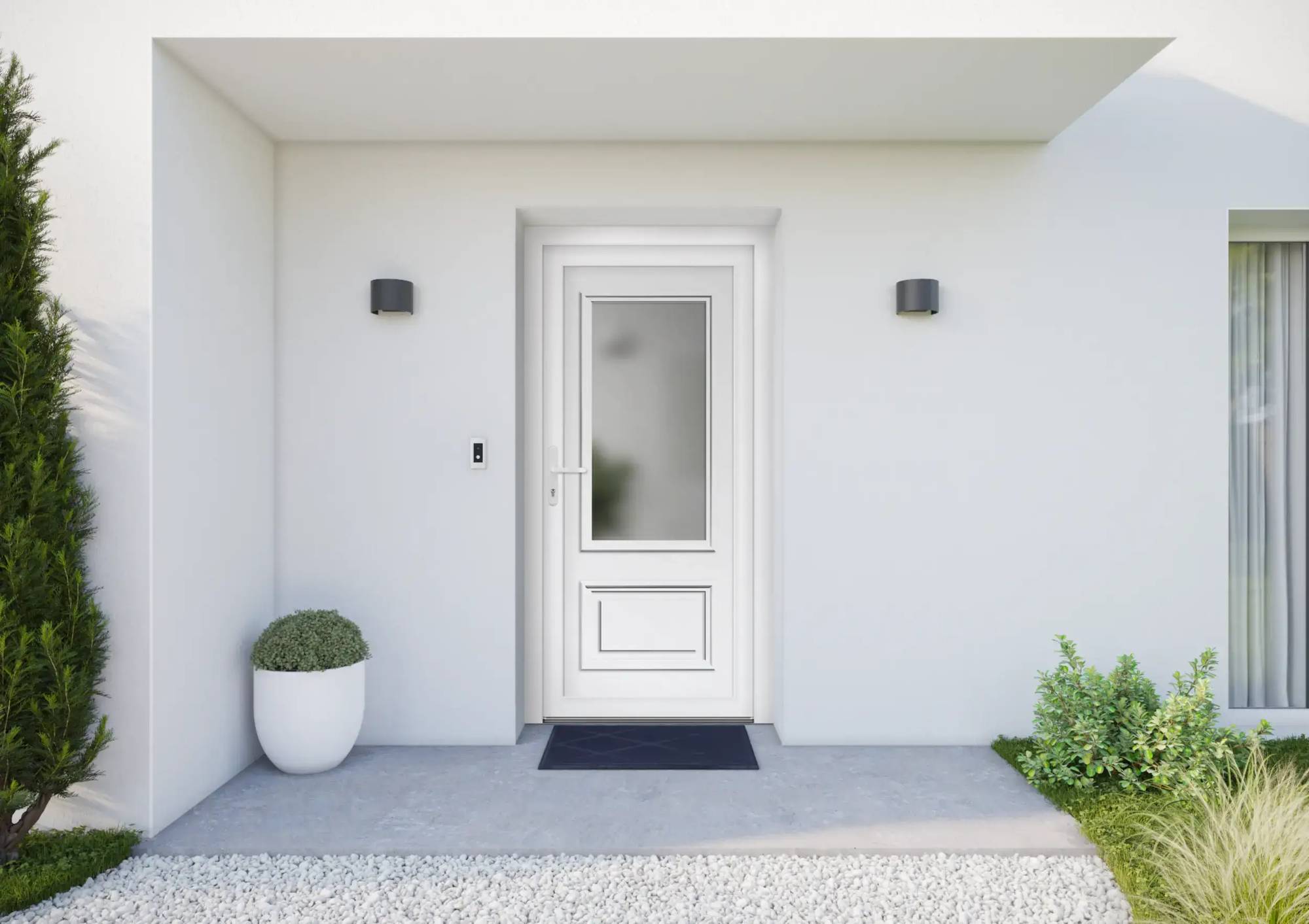 Sécurité et fiabilité sont au rendez-vous avec nos portes d'entrée en PVC semi-vitrées : leur construction robuste et leur système de verrouillage hautement performant garantissent une protection maximale pour votre maison.